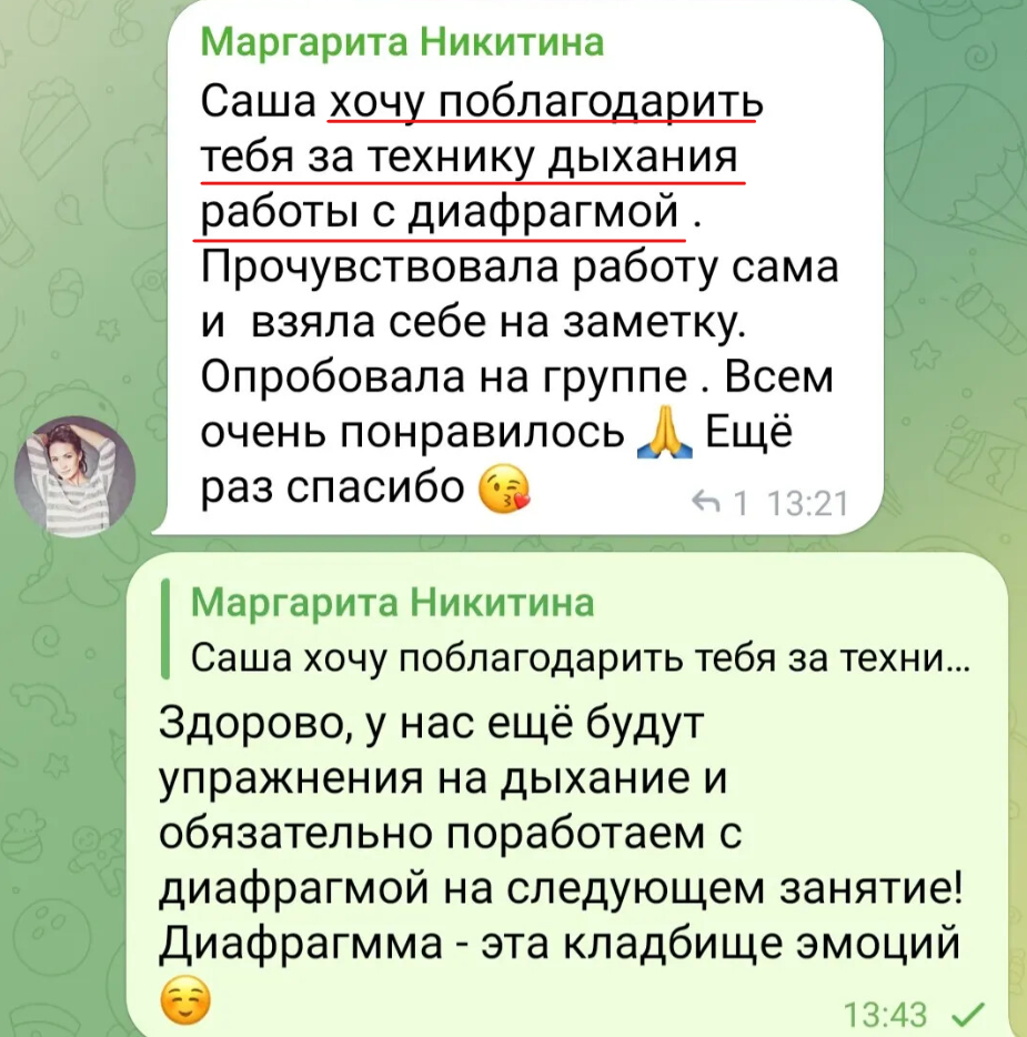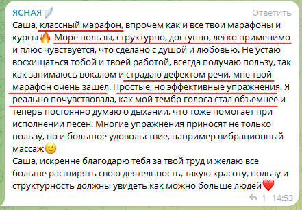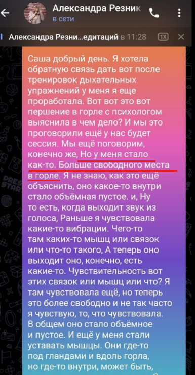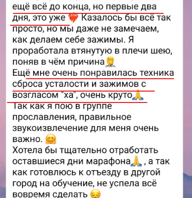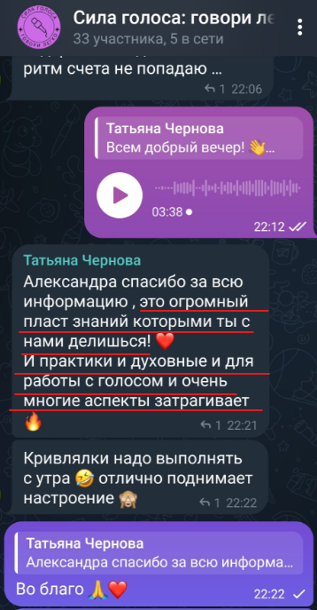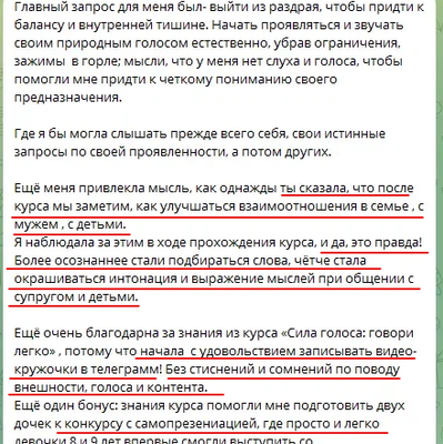 Страх публичных выступлений присущ каждому от рождения, но когда ты начинаешь любить свой голос, умеешь им управлять, у тебя налаживается связь со своим внутренним Я (да, да и это тоже прорабатывается через работу с голосом). Страх постепенно отступает, у тебя появляется сила, воля, уверенность и самое главное желание и возможность свободно и легко рассказывать о себе, о своем продукте, о своих проектах и желаниях.